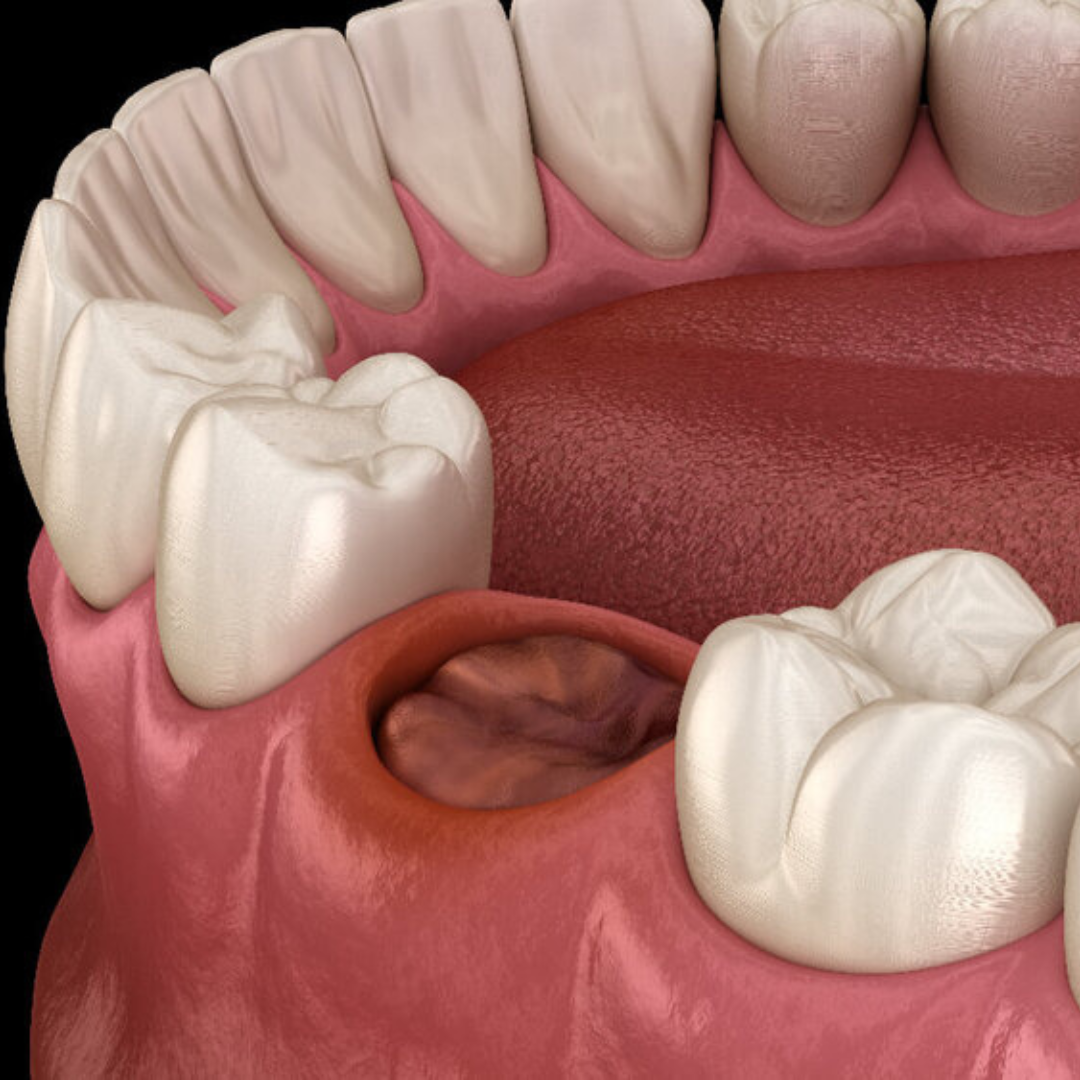 • Empty-looking socket where the tooth was removed